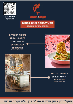 10% הנחה במסעדת אומה טומה לעובדי מכון ויצמן
