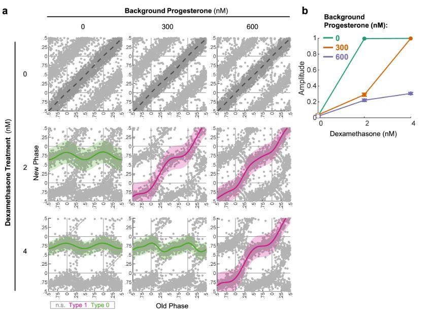 Circadian clocks are cell-autonomous oscillators that are present in most cells of the body and temporally coordinate their function. Alignment of cellular clocks with each other and the environment is mediated mostly through blood borne signals. Although serum is a potent resetting signal for circadian clocks, the underlying intracellular molecular underpinnings are largely unknown. Here, we employ Circa-SCOPE, a high-throughput single-cell method for constructing Phase Transition Curves (PTCs), to classify intracellular signaling pathways and clock-components that participate in clock resetting by serum. We identify steroid hormone, including sex-hormone receptors as key mediators of serum-induced phase resetting. Unexpectedly, we discover that Cry2 plays a central role in the response to serum and specifically to steroid hormones, irrespectively of its effect on the clock period-length. Furthermore, we find that PTCs are largely unaffected by the period-length. Overall, our findings provide important insight on intracellular determinant of the clock response to serum.