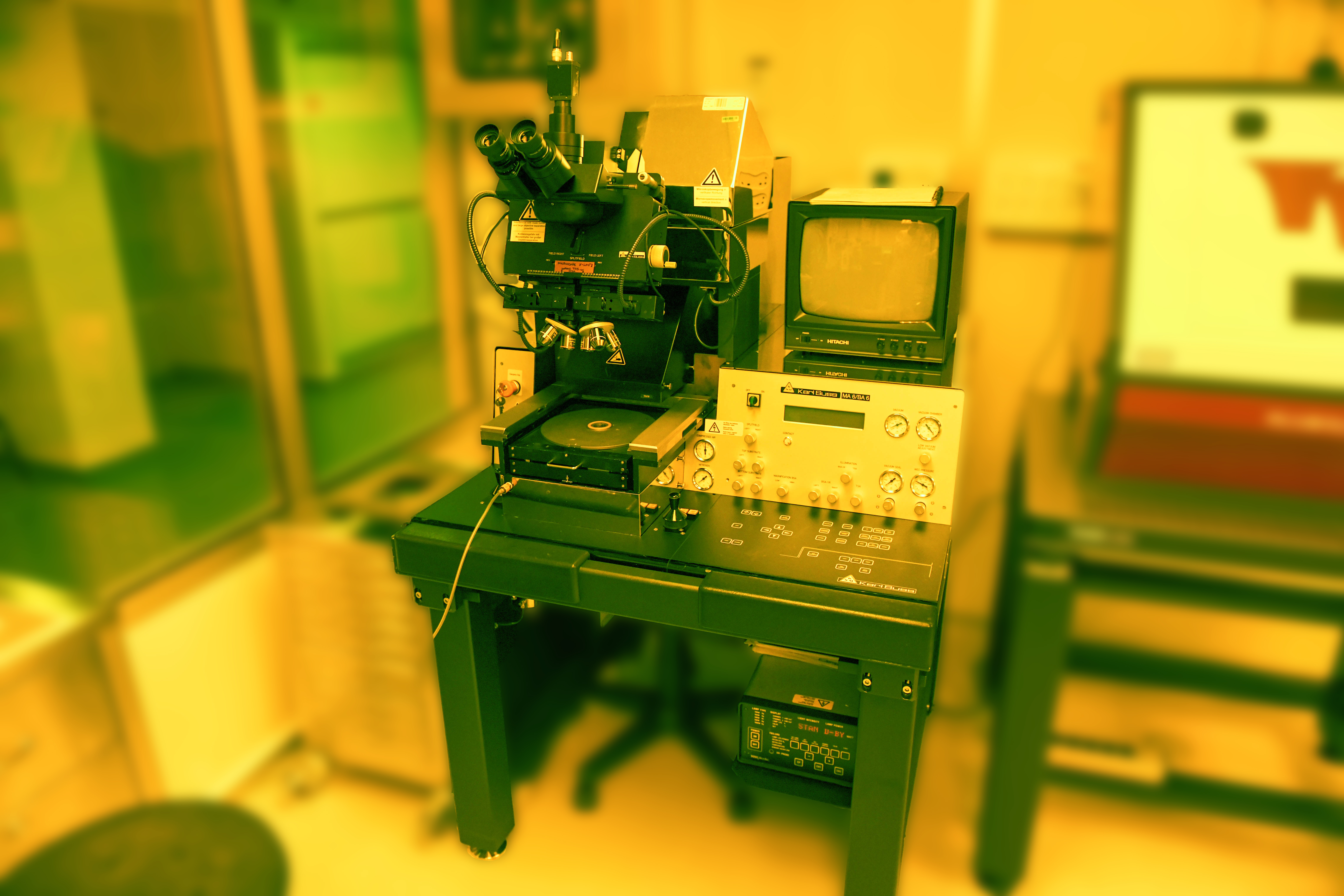 The MA6 mask aligner was designed to pattern parts of thin films using optical lithography. It uses light to transfer a geometric pattern from a photomask to a light-sensitive chemical "photoresist", or simply "resist," on the substrate.