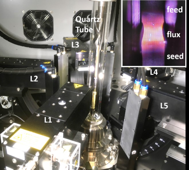 Our research is concentrated on finding answers to this pivotal question. Our laser based traveling-solvent floating-zone furnace is the ideal tool to synthesize high quality single crystals of cuprate superconductors and related oxide materials. It allows us to create the ideal compounds to address outstanding questions.