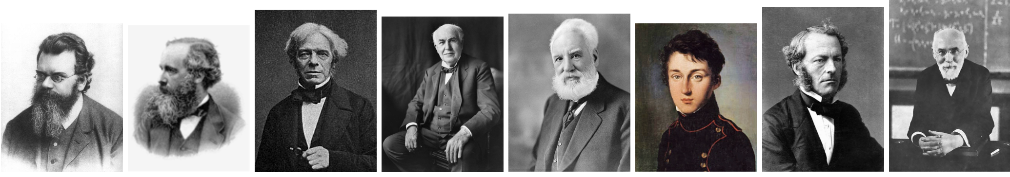 -----לורנץ---------------סטוקס-------------------קרנו-------------------בל-----------------אדיסון--------------------פרדיי--------------מקסוול---------------בולצמן