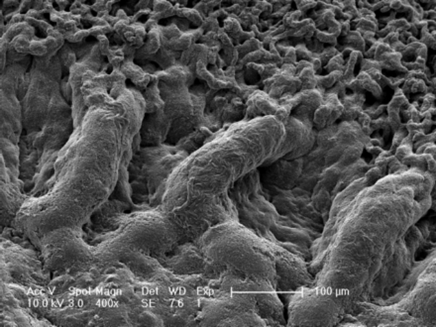 | Scanning Electron Microscopy of the interphase between biofilm of bacillus subtilis and biofilm of gram-positive antagonist. |